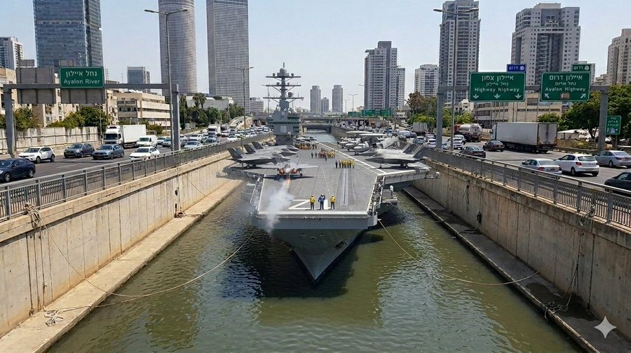 Авианосец Джеральд Форд встал на якорную стоянку на реке Аялон, Тел-Авив.