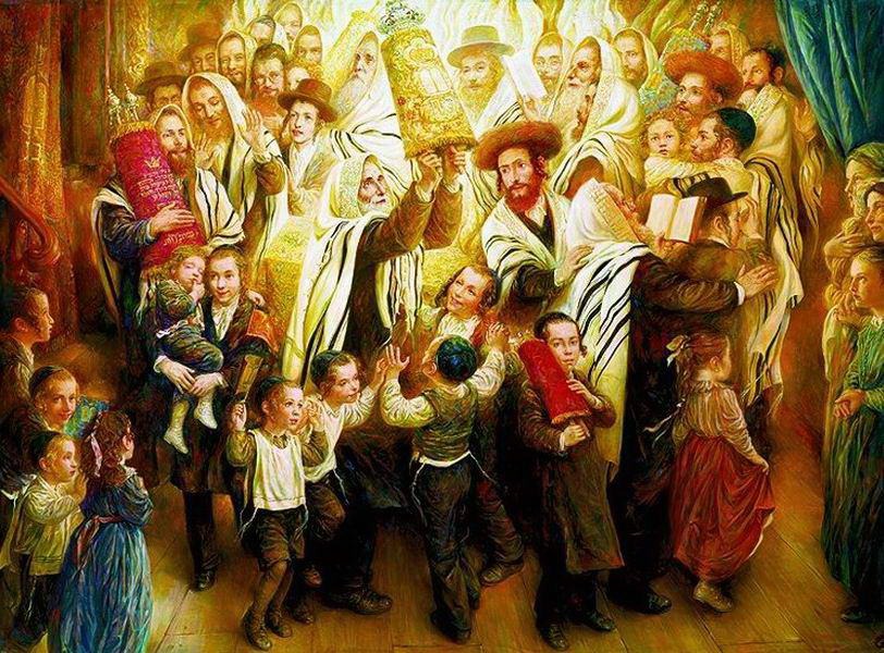 Во всех синагогах торжественно вынимают из ковчегов свитки, и семь раз обходят с ними вокруг бимы - возвышения, на котором обычно читают Тору.