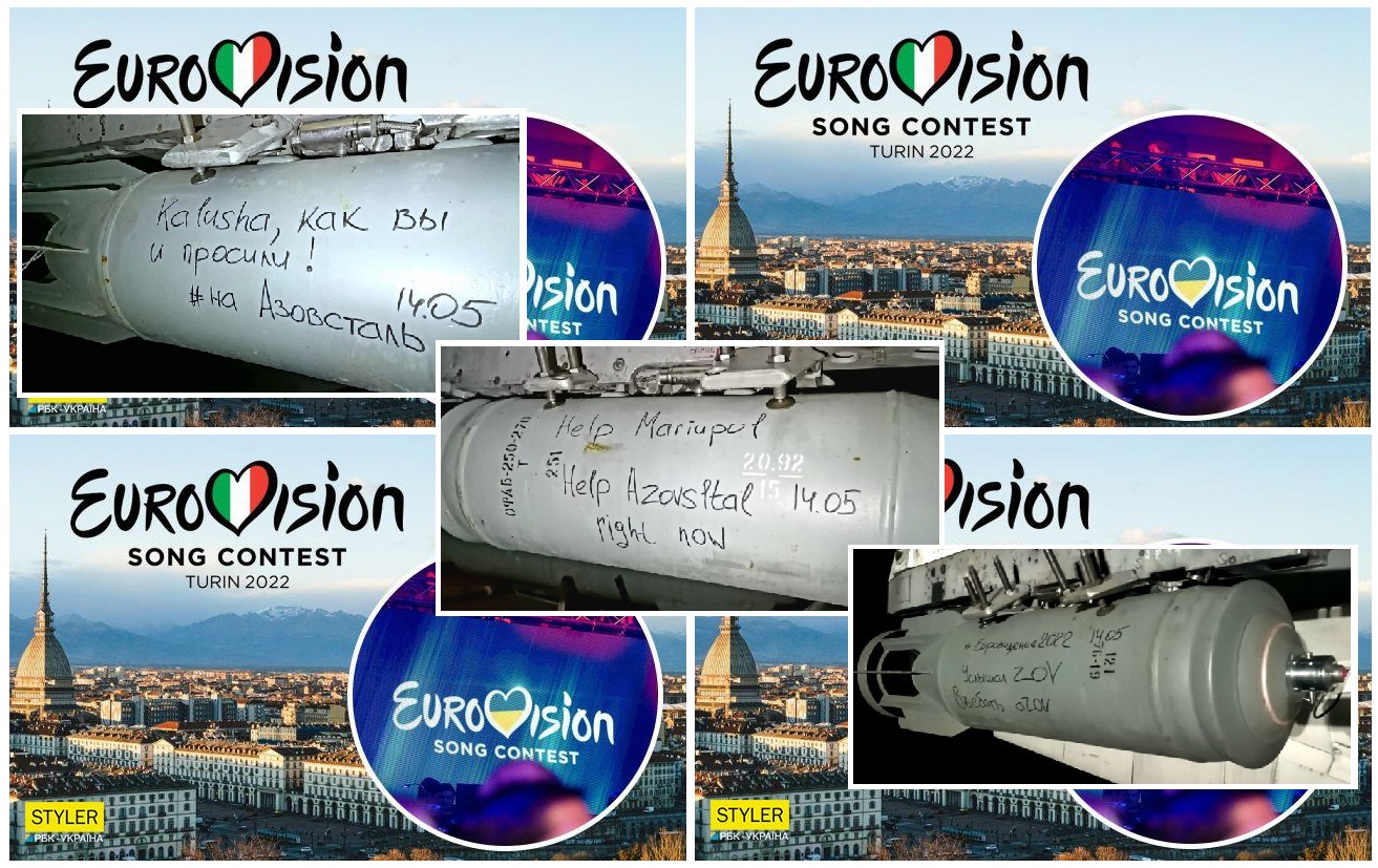 "Российские военные отреагировали на победу украинской музыкальной группы Kalush Orchestra на "Евровидении-22", где солист призвал мир помочь украинским военным на "Азовстали" в осажденном Мариуполе. Россияне подписывают бомбы с "поздравлениями" и запускают их по территории металлургического завода."