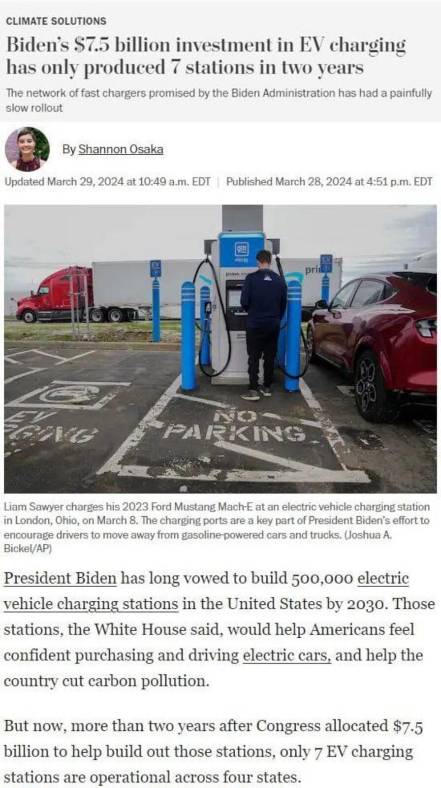 Байден давал обещание построить полмиллиона зарядных станций в США к 2030 году.