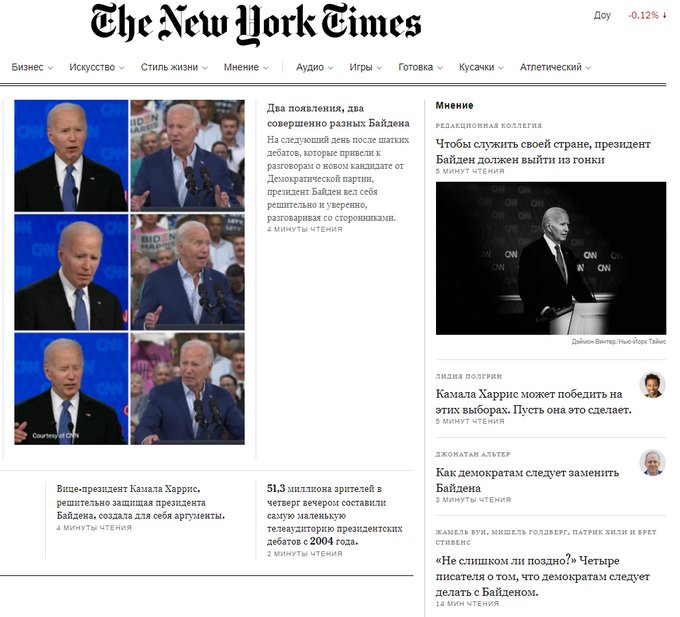"Нью-Йорк Таймс" в редакционной статье призвала Байдена снять свою кандидатуру.