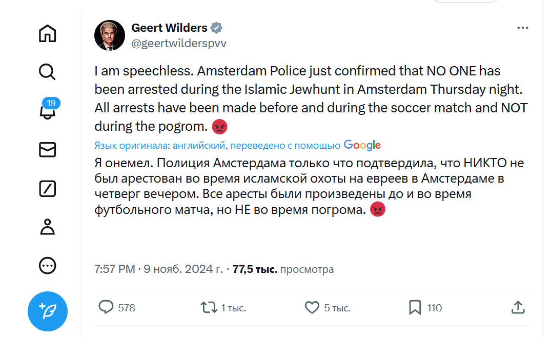Никакие это не фанатские разборки. Джихадисты готовили акцию за несколько суток до матча, создавали группы в мессенджерах и обговаривали места сбора и нападения. Ещё ни одного израильского болельщика в Нидерландах не было.