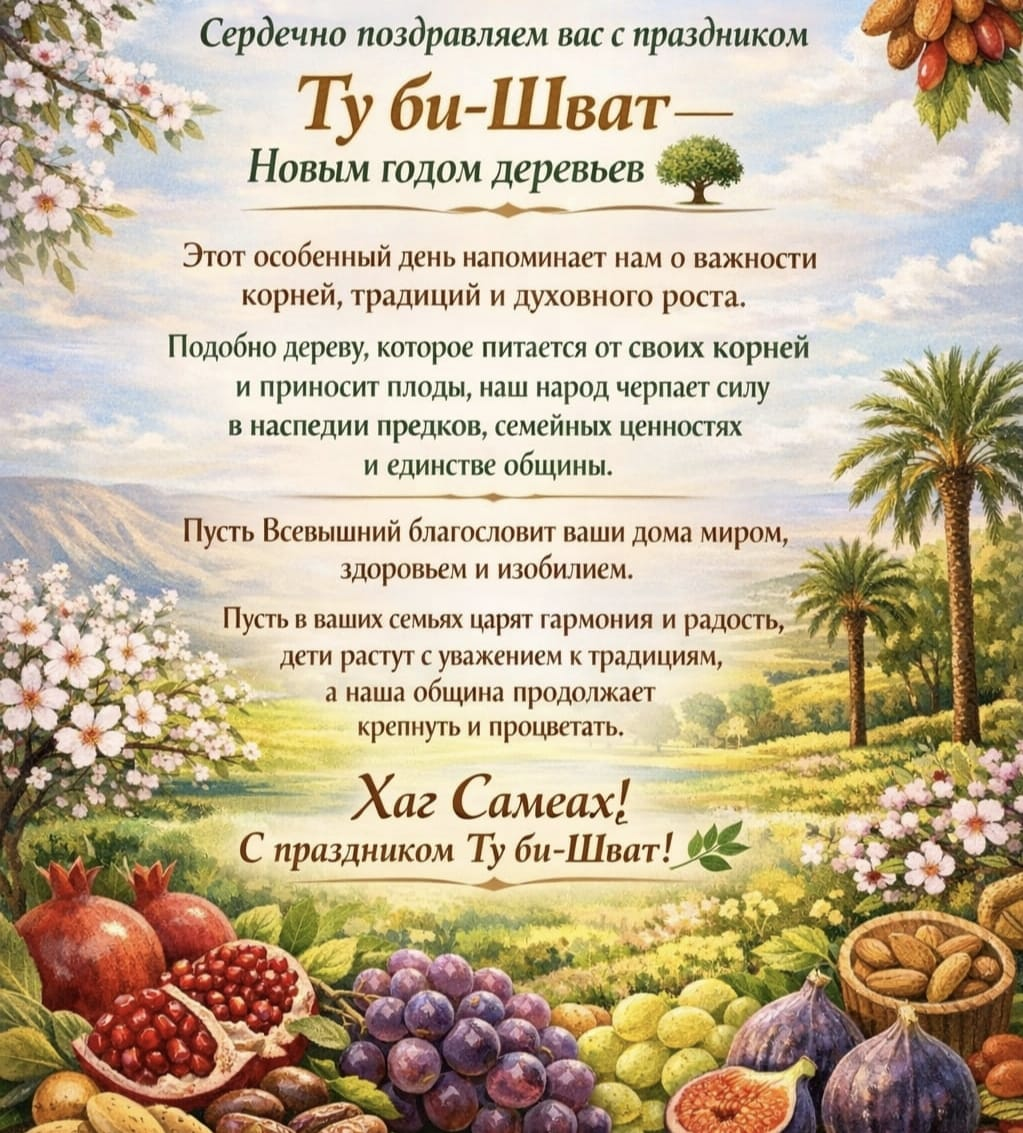 Это когда принято есть плоды, которыми Земля Израиля славится: сухофрукты, орехи и блюда из злаков.