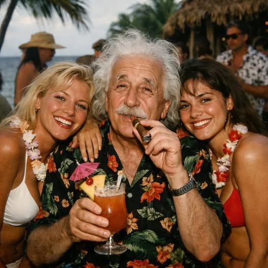 Ну фсё, мемасики пошли: Эйнштейн на острове учит девушек физике.