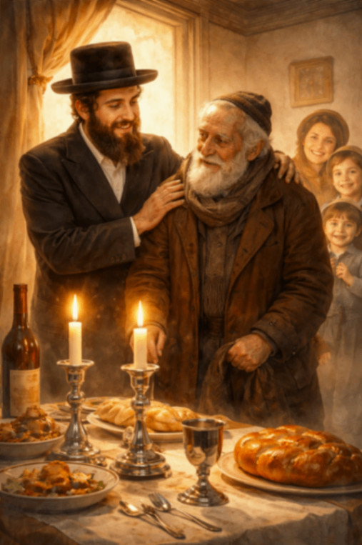 Но больше всего он любил готовиться к Шаббату. Тогда его сердце наполнялось особой радостью. Однажды, за несколько часов до Шаббата, торопясь домой, Йосеф заметил бедного немолодого хасида, сидящего у дороги и дрожащего от холода. Люди пробегали мимо, не подходя к нему, спеша по своим неотложным делам...